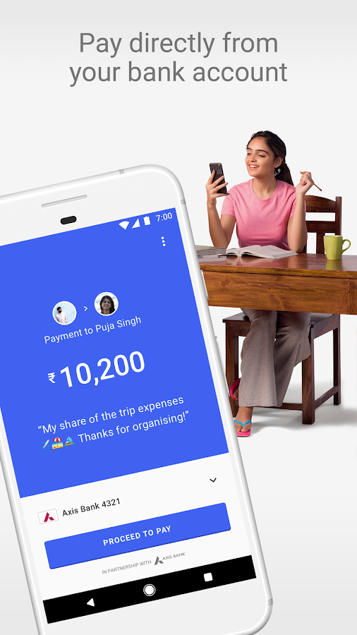 Send money to friends or family, instantly receive payments directly to the bank account & pay the nearby cafe with Tez, Google's new digital payment app for India. Using NPCI's (National Payments Corporation of India) Unified Payments Interface (UPI), money transfers are simple & secure with Tez.